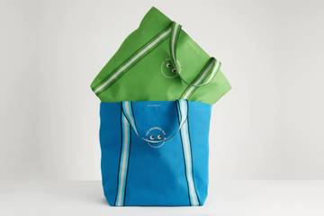 The bags are designed by Anya Hindmarch and manufactured by the Solent Group. They retail for 10 pounds and come with a 10-year guarantee. Should a customer wish to recycle the bag, it can simply be folded into its free returns pocket for a replacement.