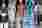 Look 1: A semi-translucent top and skirt with torn pale blue textured patches and matching flats and a slouchy bag.
