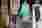 Look 1: a green mohair wool double-breasted jacket with rounded shoulders and cropped sleeves over a sheer black slip dress with embroidery. Opera-length black leather gloves, a black hard cased bag and mules completed the look.